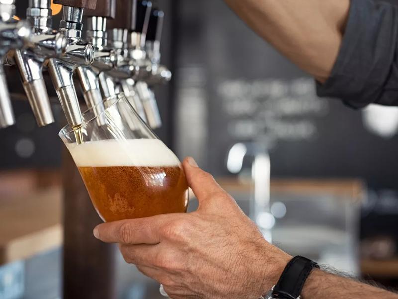 craft beer in a glass with dinner